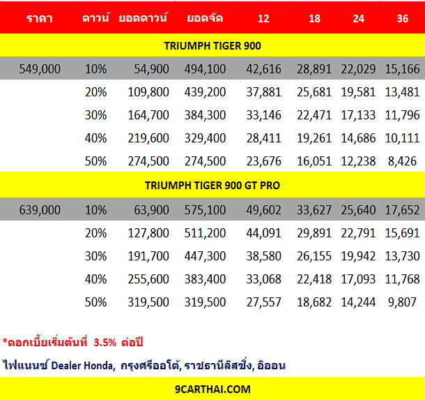 | ชื่อรุ่น | TRIUMPH TIGER 900 GT PRO |