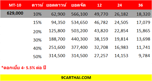 ใหม่ YAMAHA MT-10 2020-2021 ราคา ยามาฮ่า MT-10 ตารางราคา-ผ่อน-ดาวน์