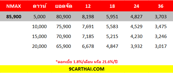 ใหม่ YAMAHA NMAX 2020-2021 ราคา ยามาฮ่า NMAX 155cc ตารางราคา-ผ่อน-ดาวน์